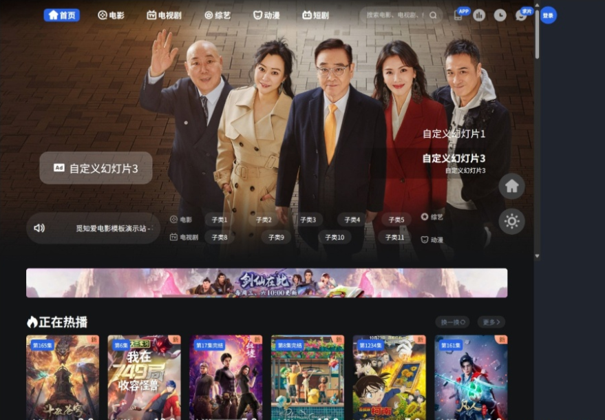 5、首页幻灯片设置视频推荐 9,其他的自行后台设置
