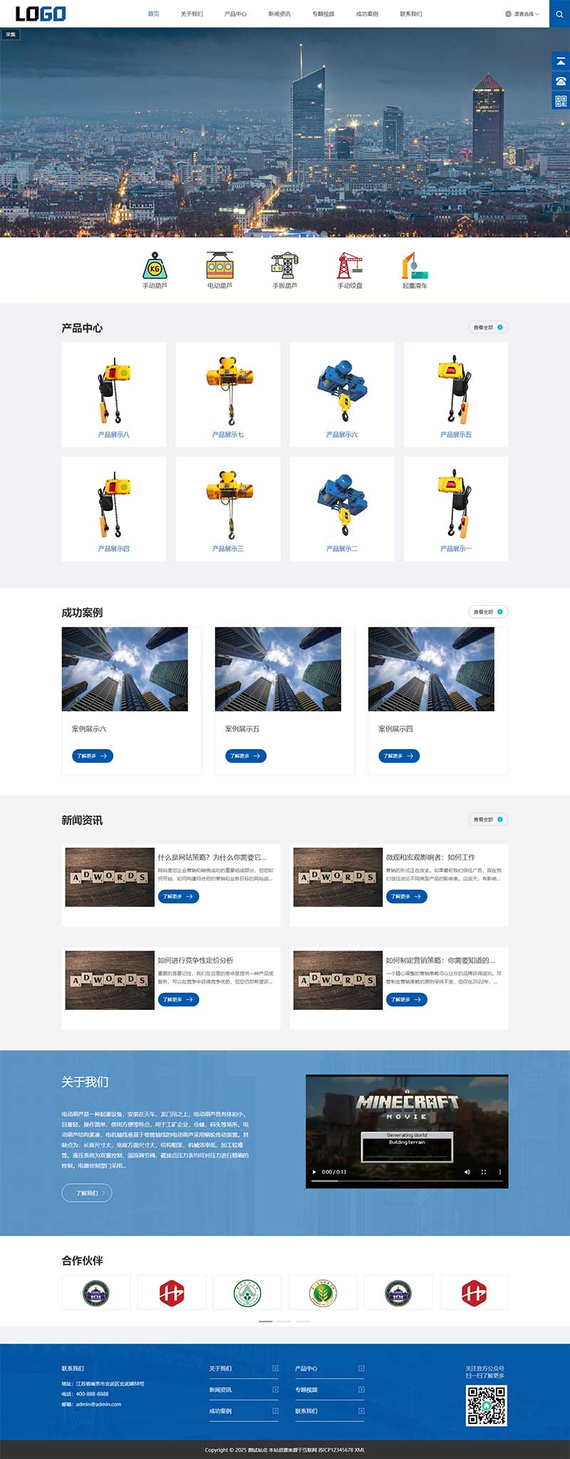 (自适应手机端)中英文双语网站模板 电动葫芦外贸网站源码下载_