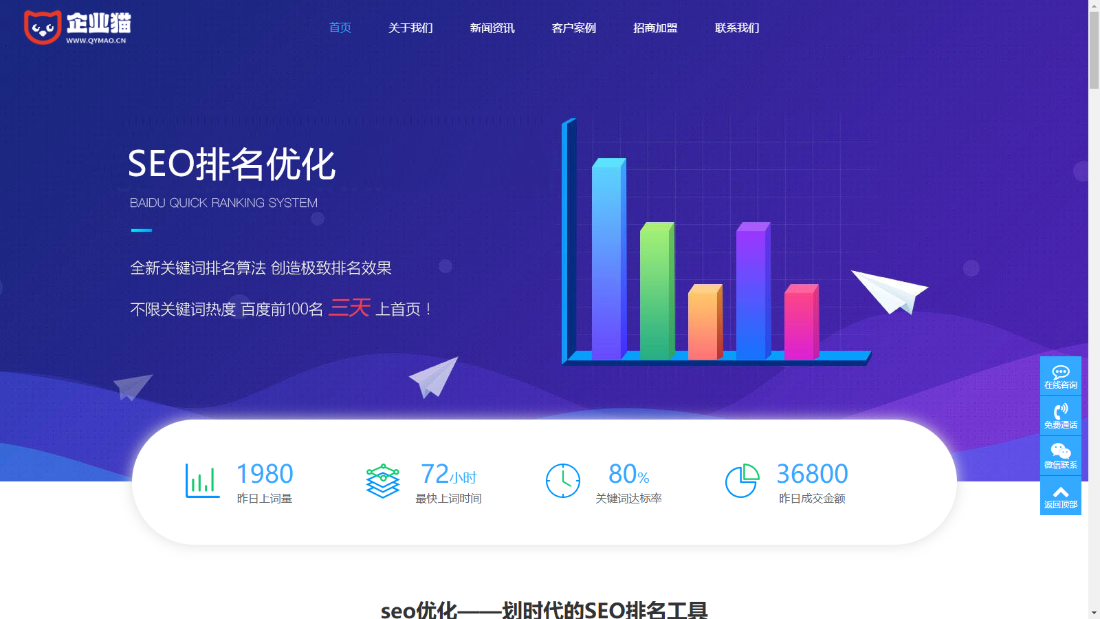 UI挺漂亮的seo快排网站模板,有需要的自行下载吧