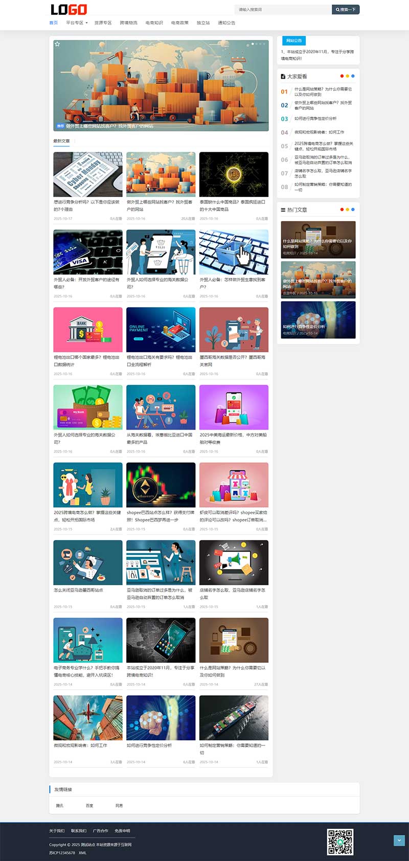 (自适应手机端)博客新闻网站模板 跨境电商博客网站源码下载_