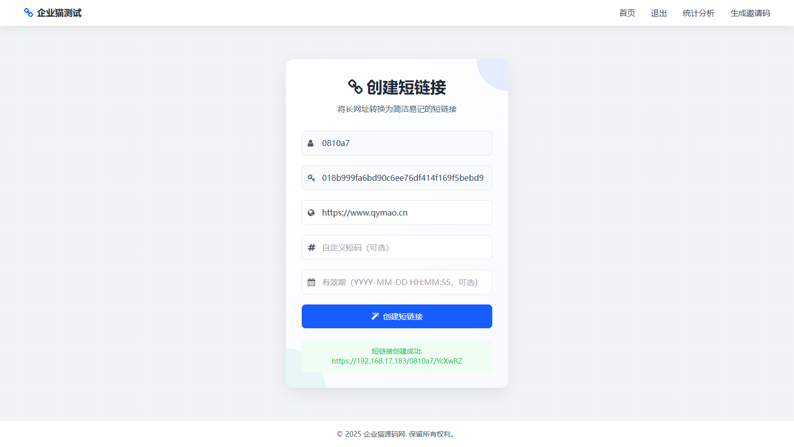 说一下特点吧,短链接格式如同https://域名/0810a7/tlWl6y,其中0810a7区分用户,tlWl6y是短链接的短码