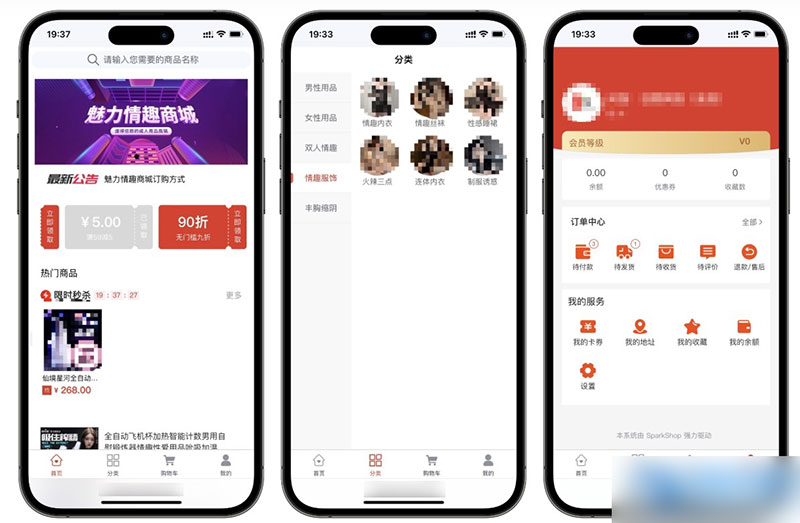 功能很齐全,支持 DIY 自定义前端界面,带一些数据成品站,支持秒杀和优惠券等营销功能,有分销功能