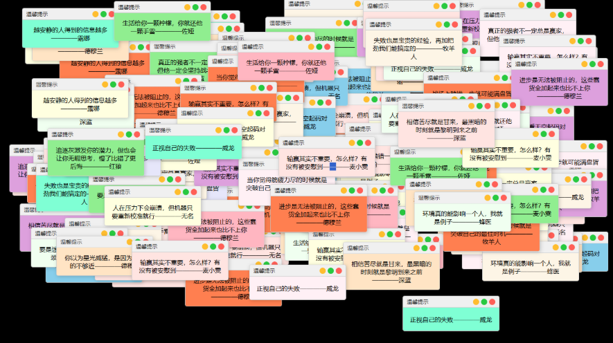 1、全功能后台:你可以在后台修改自己的登录密码,管理所有弹窗文字(增删改查),自定义全局的背景音乐、背景颜色、弹窗颜色,甚至还能塞点JS特效代码进去。