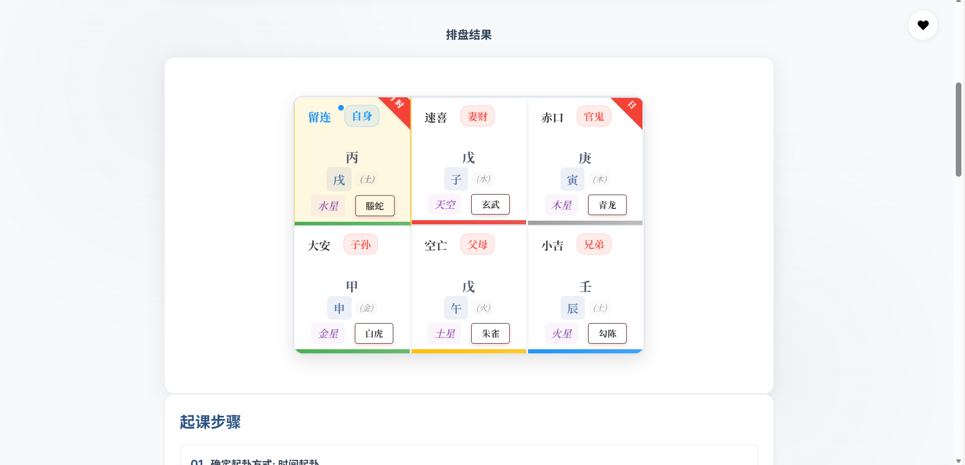 纯前端小六壬排盘工具(HTML+JS+CSS 开源)
