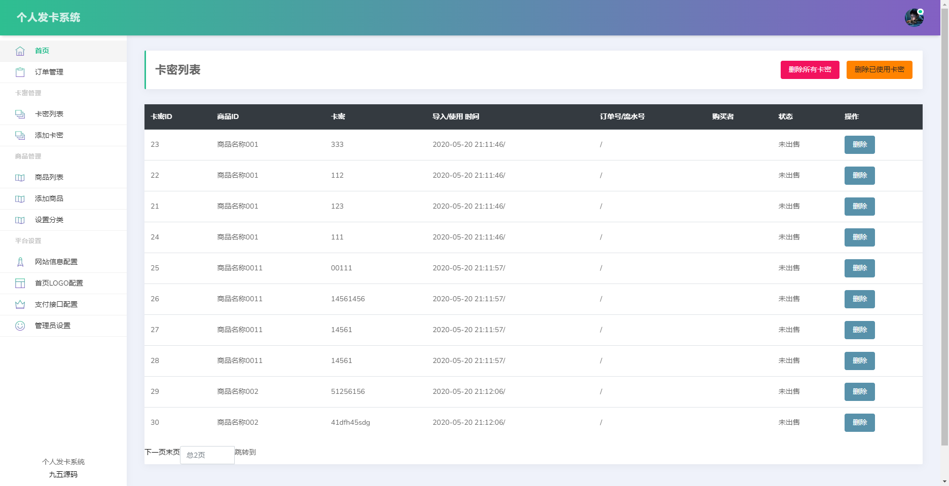 卡密发卡系统,源码无加密,功能完善