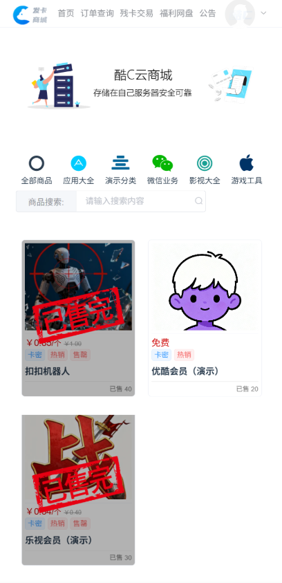 Cool-C 是一个功能完善的电商系统前端项目,采用 Vue.js + Element UI 构建,支持商品展示、在线购买、用户管理、残卡交易、网盘服务等多种功能。