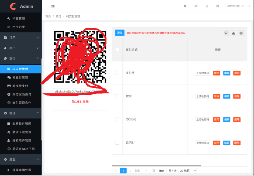 5.支持众多支付渠道 支付宝当面付 码支付(内置)易支付