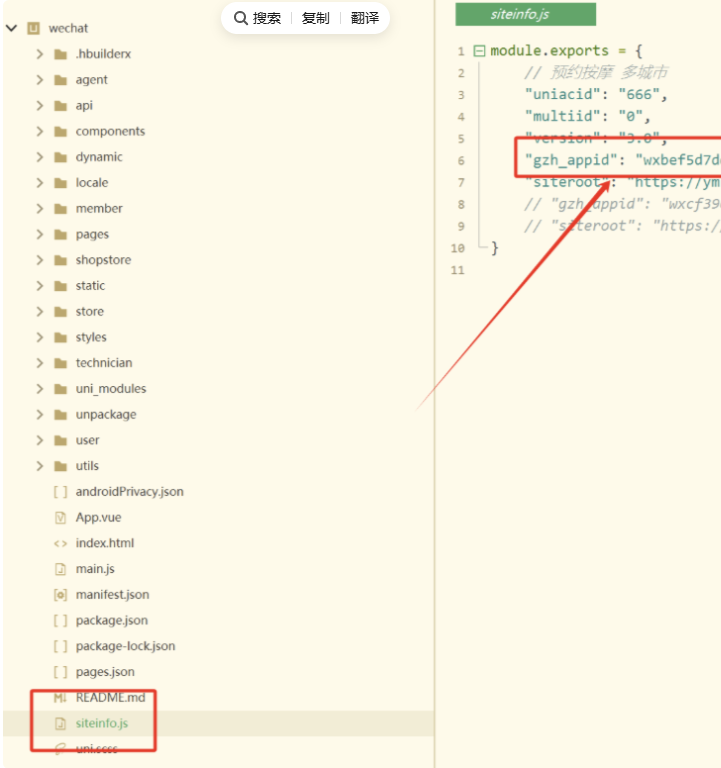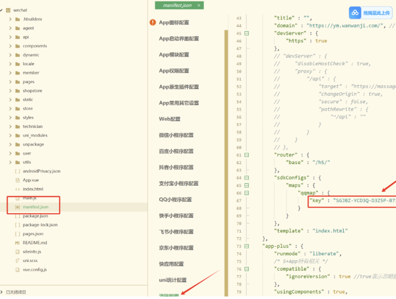 3、基础配置分配Appid、源码视图设置腾讯地图key和公众号id