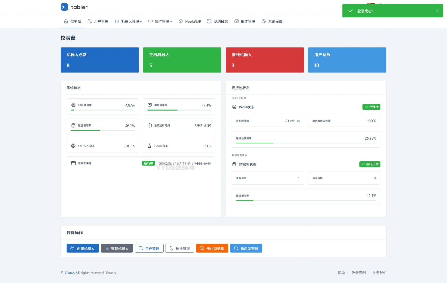 实时状态监控 – 机qi人运行状态、消息统计、性能监控