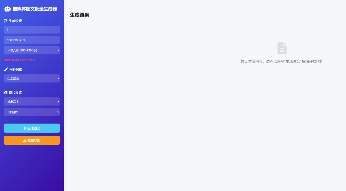 - 系统会确保每篇文章字数超过 300 字,并避免内容重复