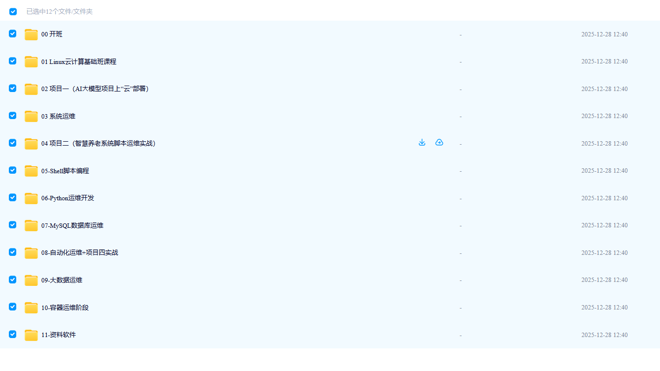 这次在内部学园那里付费购买了黑马的AI运维云计算内部教程,希望能够帮助要有需要的坛友不出意外的话应该是全网最全的教程 带课件