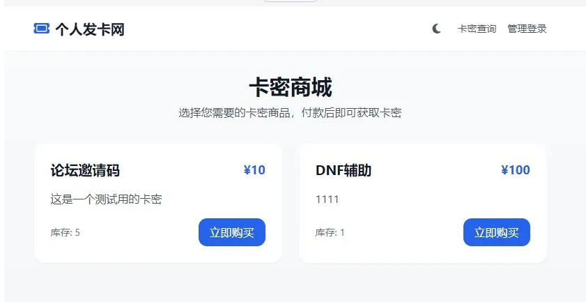– 🏠 简洁的卡密商城界面