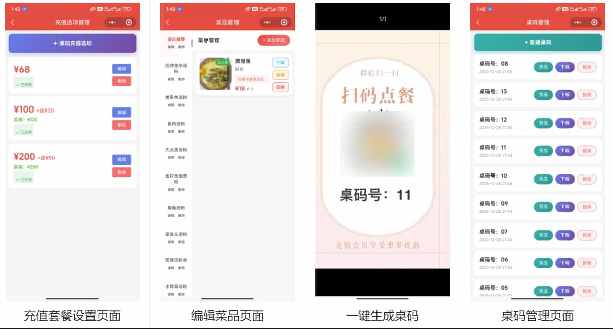 功能亮度:一键生成桌码、打印菜单小票(不需要人工手写菜单)