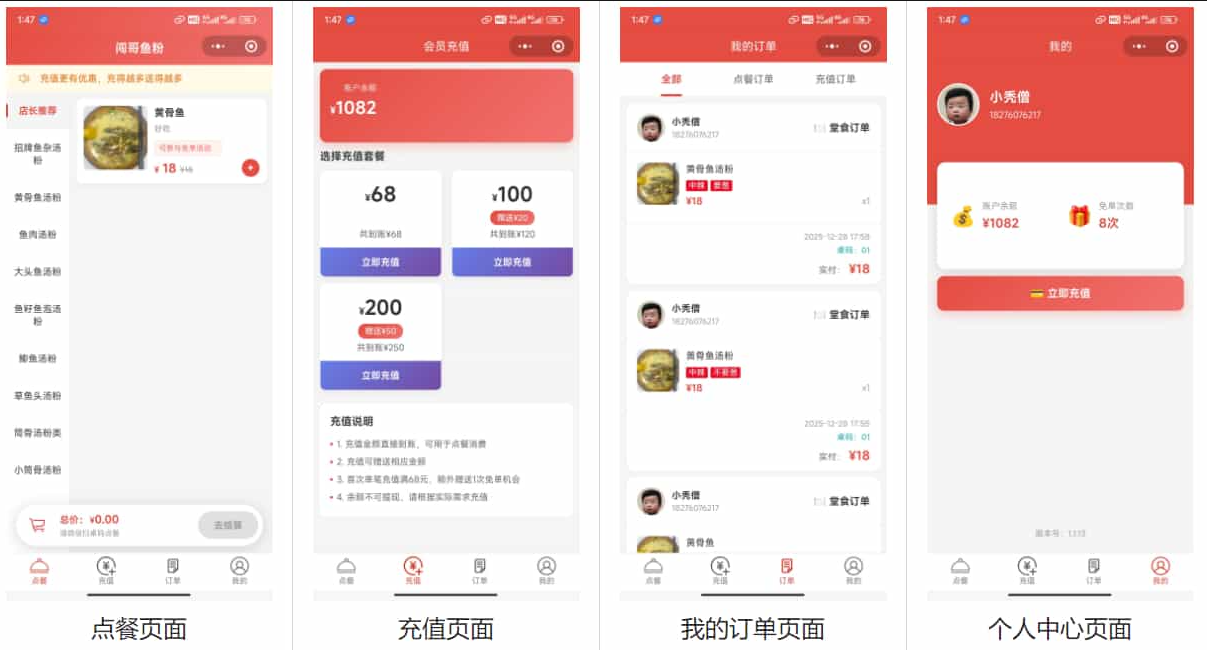 ✅ 会员管理 – 查看会员列表,修改会员余额和免单次数