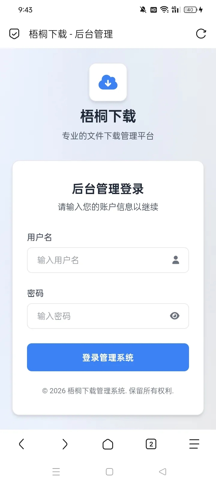 一个现代化的 Web 下载页面系统,支持自定义外观和功能配置,包含完整的后台管理功能和安全增强特性。