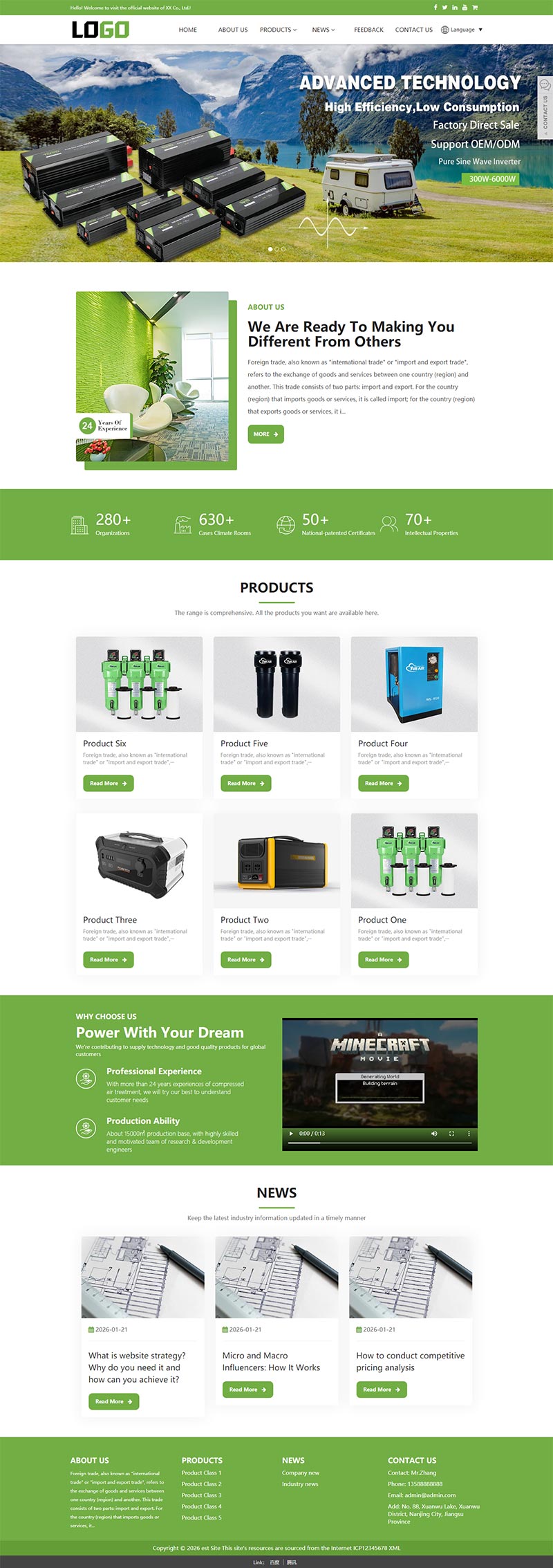 (自适应手机端)电源设备外贸网站模板 带自动翻译功能_