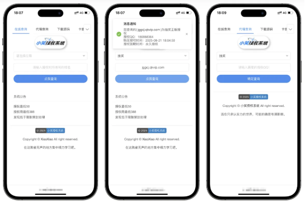 小笑授权系统旨在为个人开发者或者开发团队提供一种高效便捷的管理个人源码的方案。通过小笑多应用授权系统,您可以随时随地的面向您的用户添加授权、管理授权。此外还可以通过简单的配置实现源码的在线下载、用户远程的在线更新、盗版系统的追踪打击。所以说,使用小笑授权系统便可极大程度的方便您的系统开发。