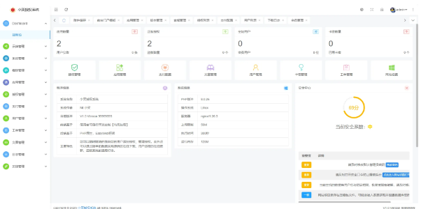- 支持自助注册用户,支持自助升级权限等级,支持自助购买授权